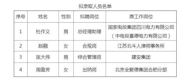现将安徽中安绿能股份有限公司2017年社会招聘拟录取情况予以公示。