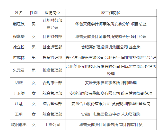 根据安徽省人力资源和社会保障厅、安徽省人民政府国有资产监督管理委员会相关要求,现将爱体育首页(中国)网页版2017年第一批社会招聘拟录取情况予以公示。
